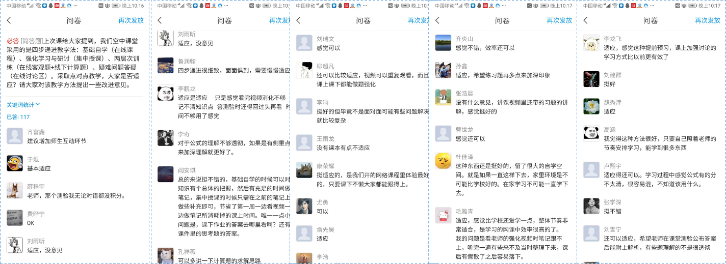经过近一个月的教学实践,最初的担心和疑虑打消了很多,学生的学习热情和自信心非但没有丢掉,反而求知欲更加旺盛了。钱伟长说过:“大学就是培养我们的学生能够到未知领域去工作的人。” 借此机会,我们应该积极引导学生把在线学习的不利因素变为锻炼自己的有利因素,鼓励学生充分发挥自身的主体作用和教师的主导作用,逐步培养出自己脱离老师就能学习的能力,进一步提升学习自觉性、主观能动性和自我约束力。