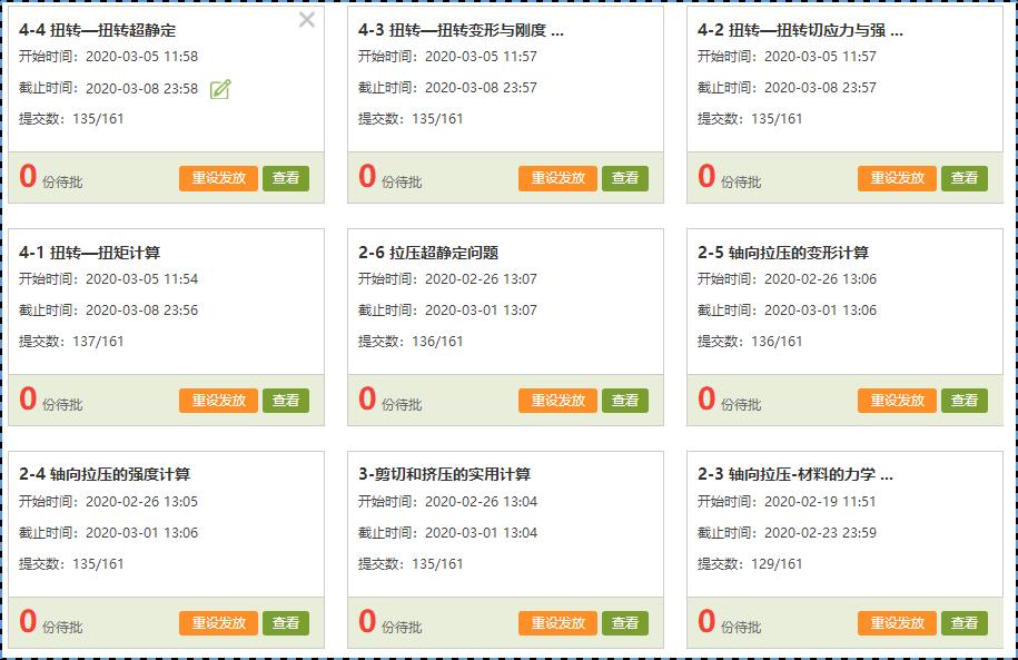 疫情就是命令,作为教师,在特殊时期最大的责任要做好教学设计,保证教学进程顺利进行,更要保障教学质量。材料力学在线课程于2018年在学银在线上线运行,至今已运行至第5期,已建设完成包括全程教学视频、习题讲解视频、讨论问题库、趣味问题库、资料库、试题库建设等在内的各类教学资源,逐步形成了“4+2”混合式教学模式。但此次不同,没有了最重要的实体课堂教学环节,如何实现两者转接?我们经过不断尝试,反复思考,重点解决了两个问题:一是解决如何将远程状态不可控的“松散个体”组建成有凝聚力的“空中班级”,让学生有团体感和课堂感;二是如何借助在线平台资源重塑原实体教学的教学流程,并将其移植至空中课堂。